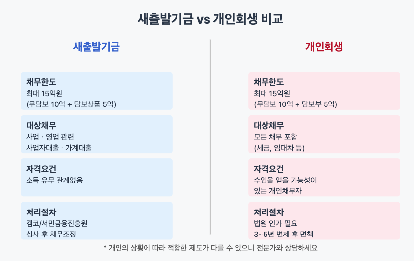 | 구분 | 새출발기금 | 개인회생 |